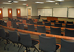 Amenities: Audio and Video Recording, Single Projector Screens, VCR/DVD Combo, Lapel Microphone, Wireless Microphone, Document Camera, Output to 10 monitors, Intercom System